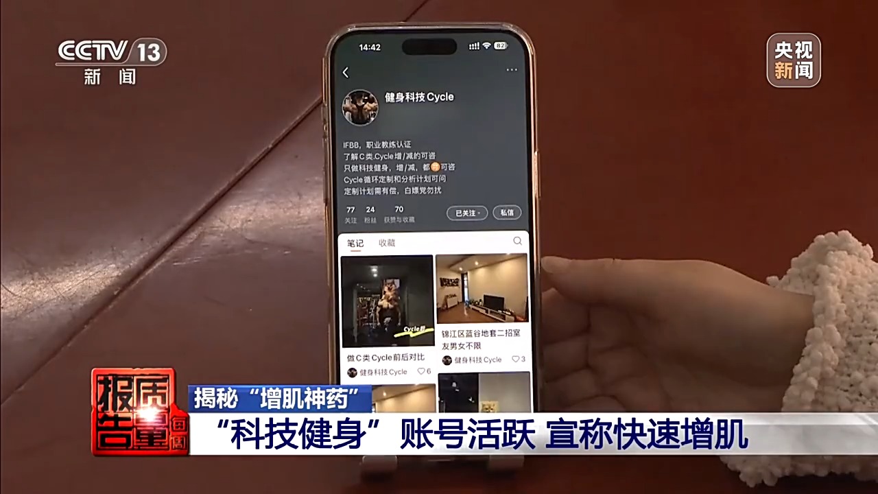 中国农业大学食品科学与营养工程学院副教授 朱毅:商业健身健美赛事普遍缺乏正规的严格的兴奋剂检测环节,变相纵容了滥用行为。线上隐秘的社群,线下私教私下流通,这一类交易就很隐蔽,查处和溯源的难度都较大。三分练七分吃,这个是自然的健身规律,现在就变成了三分练七分药了。不仅是扭曲了健身健美的初衷,而且是让身体健康付出了沉重的代价。